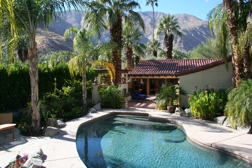 Die spanische Hacienda ist von großen Palmen umgeben und bietet einen herrlichen Blick auf die Berge um Palm Springs. In dem großen Swimmingpool mit integriertem Wasserfall und auf der Terrasse mit Grillplatz und Kamin lassen sich die sonnigen Tage und lauen Sommernächte gut aushalten. Aber auch das Innere des Hauses überzeugt durch den historischen spanischen Stil. Neben zwei Schlafzimmern und Badezimmern im Haupthaus gibt es noch eine weitere Schlafmöglichkeit in einem separaten Gästehaus im Garten. Im einstigen Haus von Spencer Tracy und Katherine Hepburn kann man ganz unbeobachtet relaxen und das Leben in Palm Springs genießen, das sich in erster Linie unter freiem Himmel abspielt.