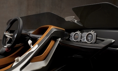 Sportlich reduziert zeigen sich die Instrumente im BMW 328 Hommage. Als einziges Rundinstrument dominiert der prominente Drehzahlmesser. In Anlehnung an das Cockpit des BMW 328 zeigt das Kombiinstrument sportwagentypisch neben der Drehzahl lediglich Öltemperatur, Öldruck und Wassertemperatur an. Rechts neben dem Drehzahlmesser sind Kontrollleuchten sowie eine Schaltpunktanzeige. Die Gehäuseumrahmung ist in schwarzem Chrom gehalten. Ergänzt wird das puristische Kombiinstrument durch einen Tripmaster.
