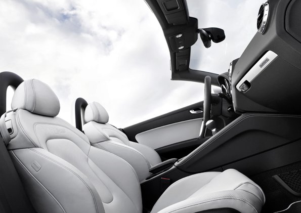 Zur optischen Differenzierung trägt auch der Singleframe-Kühlergrill bei. Sein Rautengitter ist in hochglänzendem Anthrazit gehalten, sein Zierrahmen in matter Aluminiumoptik. Die Gehäuse der Außenspiegel bestehen aus Kohlenstofffaser-verstärktem Kunststoff (CFK). Die zweiflutige Sportabgasanlage, in der eine Soundklappe den Motorsound weiter schärft, trägt ovale, schwarze Endrohrblenden. Das Designpaket Carbon veredelt den Motorraum, der Knauf des Schalt- beziehungsweise Wählhebels trägt einen Zierring in Aluminiumoptik und eine TT RS plus-Plakette. Der TT RS plus Roadster mit Handschaltung kostet in Deutschland 63.500 Euro, mit Siebengang S tronic liegt der Preis bei 65.650 Euro.