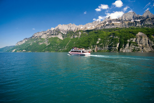 | Der Walensee ist Wahrzeichen der Ferienregion Heidiland und eine gemütliche Schifffahrt ist immer beliebt. |