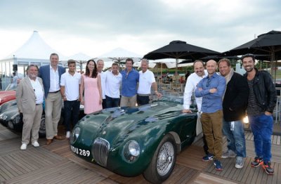 Ein E-TYPE Roadster Baujahr 1961 mit flachem Boden (flat floor) zierte die Ausstellungsparade im Jaguar-Zelt. In 2011 feierte damit einer der wohl legendärsten Sportwagen der Automobil-Historie 50-jährigen Geburtstag. Sogar Enzo Ferrari outete sich mit dem Lob „das schönste Auto der Welt“ als heimlicher Bewunderer. Für Jaguar erwies sich der am 15. März 1961 in Genf enthüllte XK-Nachfolger nicht nur als Image-Träger, sondern auch als kommerzieller Hit. In 14 Jahren erlagen weltweit über 72.500 Käufer den Reizen des als Coupé und Roadster erhältlichen Modells. Seit 1996 ziert ein offener E-TYPE sogar die Dauerausstellung des New Yorker Museum of Modern Art. Noch heute sind weltweit über 30.000 E-TYPE zugelassen und bei Oldtimer-Meetings die Lieblinge vieler Classic Car-Fans.