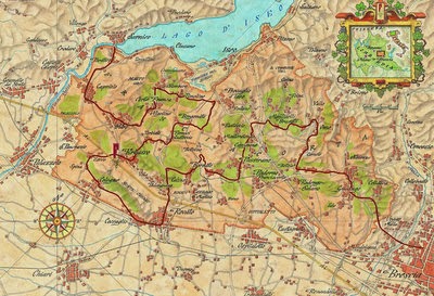 Die heutigen Grenzen der Franciacorta fallen mit denen der Grafschaft zur Zeit der Visconti zusam-‐ men, die wieder zurückerobert und dann im 16. Jahrhundert von der Serenissima bestätigt wurden. Das Gebiet der Franciacorta umfasst aktuell 19 Gemeinden der Provinz Brescia. Der so verführerisch klingende Name Franciacorta erinnert uns an die weit zurückliegende Geschichte, die mit den Corti Franche (von Steuerzahlungen befreite Höfe) verbunden war und an die Zeit, als das Gebiet nach dem Eintreffen der Cluniazensermönche in den Genuss des Freihandels gelangte (curtes francae).