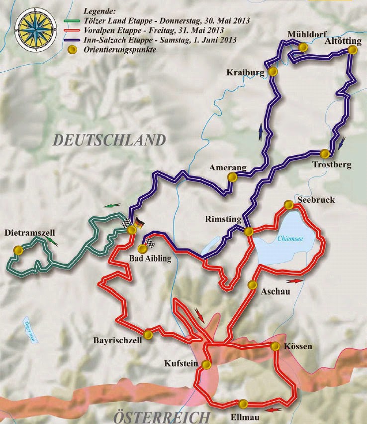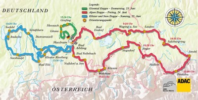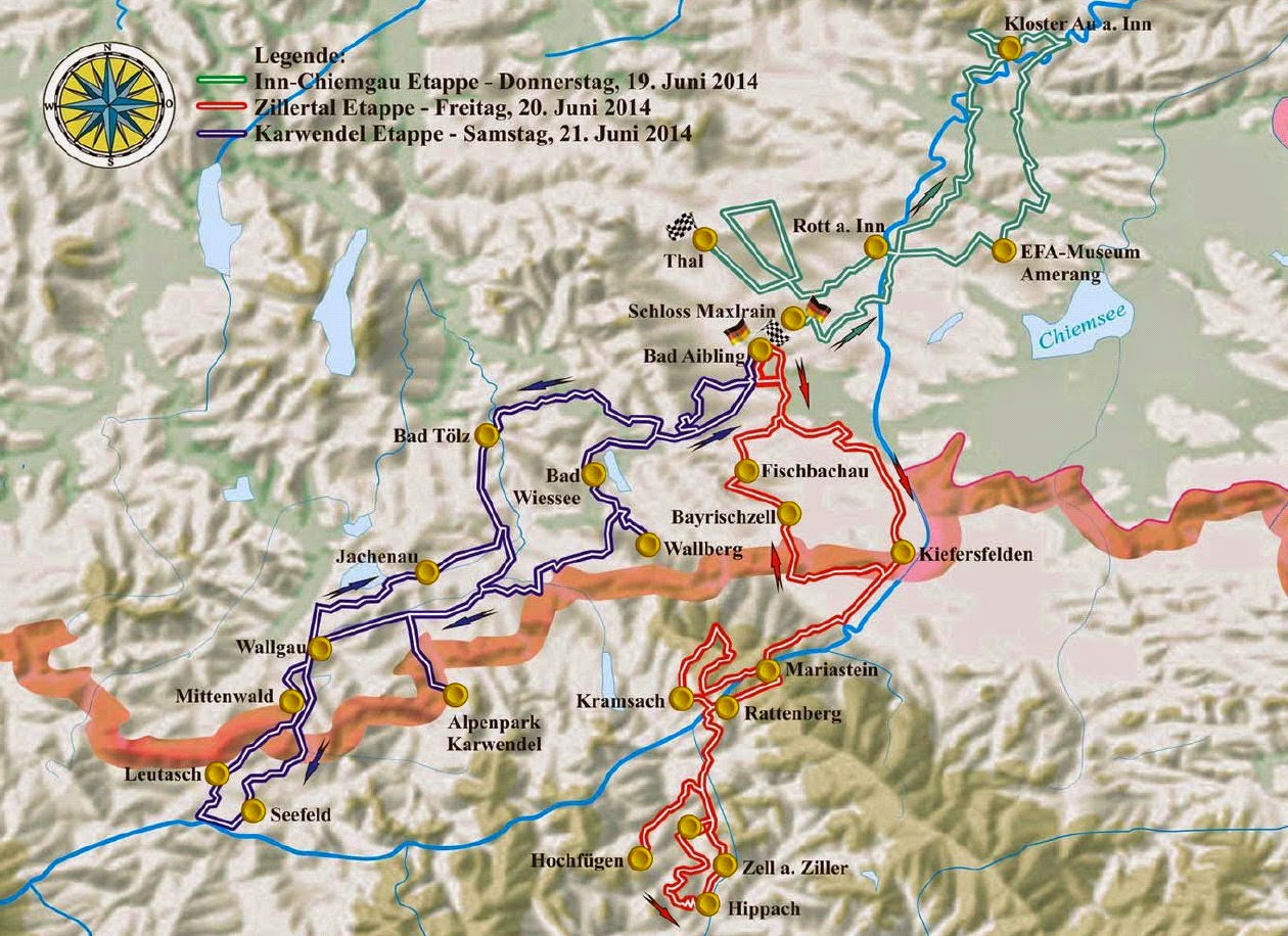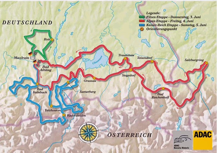 Bei der 27. ADAC Bavaria Historic 2014 steht zuerst die 180 Kilometer lange Inn-Chiemgau Etappe auf dem Programm. Am Freitag ist die Zillertaler Höhenstraße, ein landschaftliches Kleinod, Höhepunkt der 350 Kilometer langen Strecke. Die Karwendel Etappe bietet mit rund 340 Kilometern jedem unvergessliche Augenblicke.