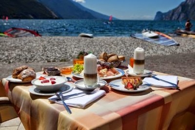 Im Beach Restaurant & Bar gibt es frische Salaten, Eis und exotischen Cocktails, auch ein Surfcenter ist da für einen aufregenden Ausflug auf den Wellen des Gardasees.