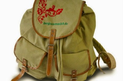 | Bioprodukte der Molkerei Berchtesgadener Land (oben), Bergbauern-Retro-Rucksack zum Wandern (unten) |