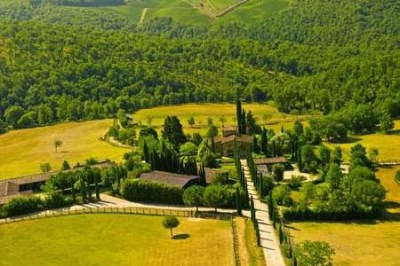 Das Gut liegt 30 Kilometer von Florenz entfernt, gleich hinter der Ortschaft Panzano in Chianti. Ein Orientierungspunkt ist die Kirche San Leolino, die nahe der Tenuta – eingebettet zwischen den Hügeln der Conca d’Oro – aufgrund ihrer romanischen Architektur bewundernde Blicke auf sich zieht. Direkt hinter dem Gut breiten sich fächerartig 70 Hektar aus, die Wald, Oliven, Weiden und Wiesen sowie fünf Hektar Rebfläche beheimaten.