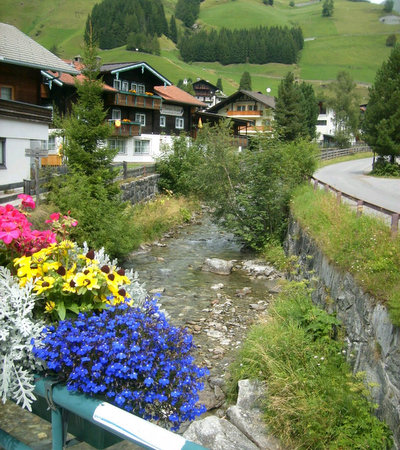 | Abschied vom Alpendorf; Panoramansicht des Verwöhnhotel Berghof (oben) |