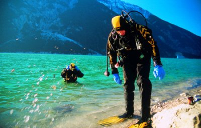 | Fahrradtour am See (unten) , Tauchen im Achensee |