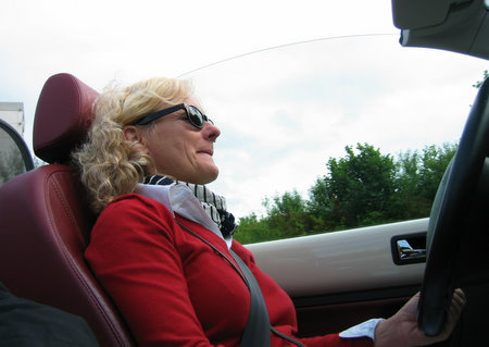 Ein tolles Ambiente empfängt uns, als wir den Berg und das darauf thronende Schloss bestiegen haben. Mit einem unbeschreiblichen Panoramablick über den Hafen und den Bodensee nippen wir an unseren Cappucinos. St. Gallen wollen wir nur kurz besuchen. In flotter Fahrt biegen wir rechts ab und landen direkt auf der Schweizer Autobahn. Verflixt noch mal. Wir haben keine Vignette. Mit eingezogenen Köpfen schießen wir hintereinander über die Schweizer Autobahn, in der Hoffnung, der 200 Schweizer-Fränkli-Strafe plus Preis der Plakette (jetzt 40 Euro) zu entfliehen. Nach zwölf Kilometer – tief durchatmen – Ausfahrt. Mit Windgeschwindigkeit entwischen wir der Autobahn und seinen Gesetzeshütern. Sie hat mal wieder gemacht, was sie will, Miss Ferrari!