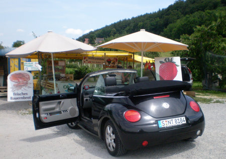 Zielbewusst führt uns Miss Ferrari auf die Insel Reichenau. Da die Insel mit einem Damm zum Festland verbunden ist, fahren beide Cabrios mit. Auf einer langen Allee stehen rechts und links große Pappeln Spalier für uns. Es könnte auch in der Toskana sein, meint Silvia in Gedanken versunken. Ein einzigartiger Kräuterduft liegt in der drückenden Luft und lässt uns eine prächtige Landschaft voller Gemüsefelder, Obst- und Weingärten erkennen. Gewächshäuser, Salatfelder und Weinreben wechseln sich hier mit kostbaren alten Kirchen ab.
