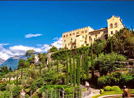 Die Gärten von Schloß Trauttmansdorf laden zum Lustwandeln ein.1870 bereits wurde der Ort durch den Besuch von Kaiserin Elisabeth zum „Curort von europäischem Ruf“ erhoben. An Frühsommersonntagen kredenzen die Gärten auf der herrschaftlichen Sissi-Terasse ein Erhabenes Frühstück.