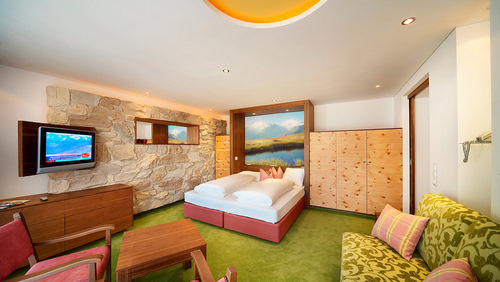 Bei der Zimmerausstattung trifft Moderne mit Tradition zusammen. Bevorzugtes Material ist heimisches Holz, das Gemütlichkeit und alpenländischen Charme verströmt. Vom Doppelzimmer bis zur Familiensuite ist jede Kategorie buchbar.