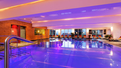 Der 500 qm große Wellnessbereich erstreckt sich über ein Farblicht-Hallenbad mit 29 Grad Wassertemperatur, integriertem Whirlpool, Schwallbrause, Sprudelliegen und dem Crystal-Ruheraum mit Wasserbetten. In der Saunawelt relaxen Sie im Tepidarium, der finnischen Sauna oder der Aroma-Dampfgrotte. In dieser Wellnesslandschaft können Sie bestimmt abschalten und neue Kraft tanken.