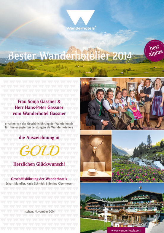 Das seit Jahren erstklassig geführte Viersternehotel Gassner in Neukirchen am Großvenediger bietet eine außergewöhnliche Vielfalt an Aktivitäten zu jeder Jahreszeit an. Daneben ist es ausgezeichnet mit dem österreichischen Umweltzeichen und wurde zum zweiten Mal in Folge als bester Wanderhotelier.