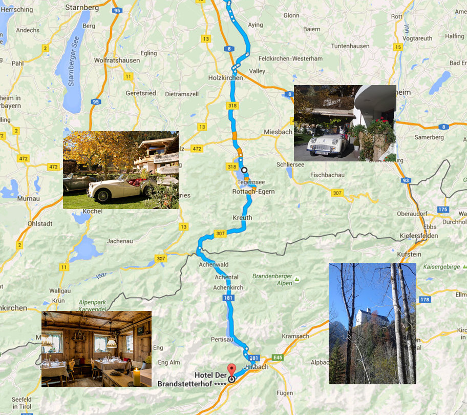Dabei entpuppte sich unser TR3A als ein wahrer Meister der Frischluftzufuhr. Die ausgeschnittenen Türen liesen ab 80 km/h den Fahrtwind heftig durch das Cockpit blasen. Weiter auf der Unterinntalstraße und vorbei an Schloss Tratzberg erreichten wir nach einem genussvollen, aber windigen Fahrerlebnis Stans, um uns im Brandstetterhof für ein Wochenende liebevoll umsorgen und kulinarisch verwöhnen zu lassen.