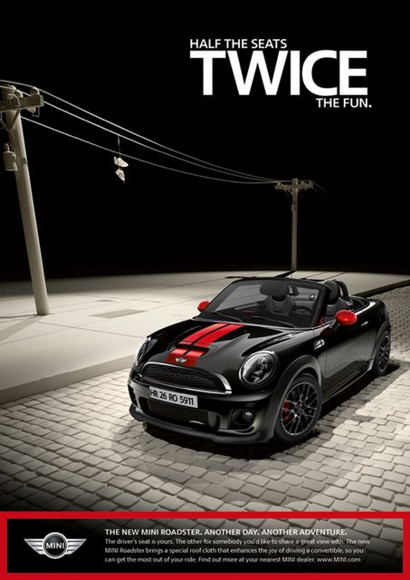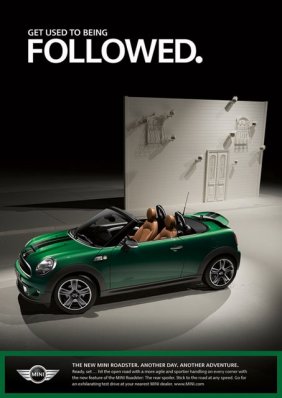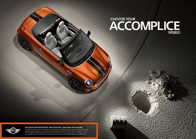 Die Printkampagne zeigt das jüngste Mitglied der MINI Familie allein oder in Verbindung mit seinem Komplizen, dem MINI Coupé. Amüsante und innovative Slogans runden die Printkampagne ab.