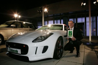 Peter Modelhart übernahm in München die Auszeichnung für den Jaguar F-TYPE. Der Jaguar Land Rover-Geschäftsführer erklärt: „Der Wettbewerb von Auto Bild Klassik unterstreicht, welche zeitlosen und beliebten Modelle aus unserem Haus kommen: Darüberhinaus sind wir natürlich auch sehr froh über unsere Klassiker der Zukunft: dass die Leser unseren aktuellen Neulingen, wie Jaguar F-TYPE und dem neuen Range Rover, auf Anhieb das Potenzial zum Klassiker zubilligen.“