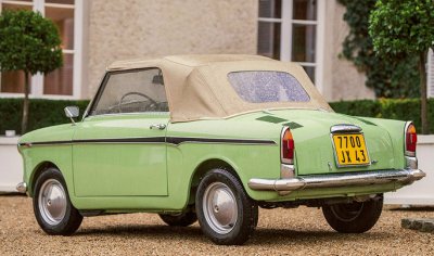 Es handelt sich um ein 1964 Autobianchi Bianchina ‚Eden Roc‘ Cabriolet, das 2016 in Paris vom Auktionshaus RM Sotheby’s für 28.000 Euro verkauft wurde.