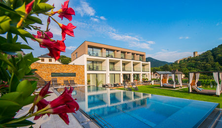 Großes Landschaftskino ist alleine schon die Lage des nur eine Stunde von Wien entfernten Boutiquehotels Das WeinSpitz inmitten von hauseigenen Riesling- und Veltliner-Weingärten auf einem Sonnenplateau des Wachauer Weindorfes Spitz. Weiße Tannenholzmöbel, Boxspring-Betten und Eichenholz-Fußböden prägen die elf Designer-Zimmer und -Suiten (38 bis 55 m²) mit ihren Panoramabalkons, von denen vier sogar über eigene Infrarotkabinen und freistehender Badewanne verfügen.