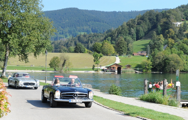 Die Route führte vom Tegernsee und nach einem „Bayerischen Abend“ in der Egener Alm mit einem Menü von Sternekoch Michael Fell am zweiten Tag über spektakuläre Alpen-Landschaften nach Aschau, wo man zu einem genüsslichen Mittagessen bei Heinz Winkler einkehrte.