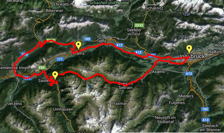 Oetz – Imst – Tarrenz – Obsteig – Stift Stams – Zirl – Innsbruck Altstadt – Innsbruck Landestheater – Kematen – Inzing – Telfs – Piburg – Oetz