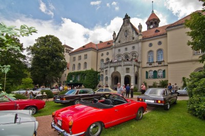 | Oldtimer – Treffen in Schloss Waldburg (unten) – Werbeanzeigen von Horch (oben) |