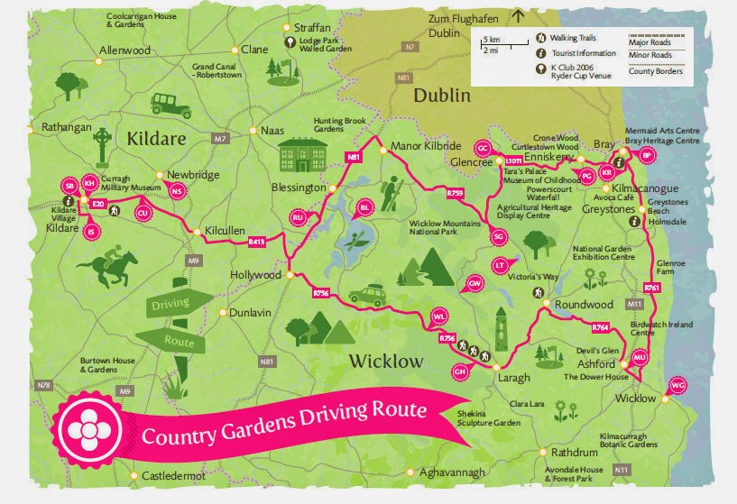 Neben der „Grand Tour“, die klassische Route durch Kildare und Wicklow , gibt es auch einige thematisch gestaltete Rundfahrten für jeden Geschmack wie die „Great Houses Driving Route“, die „Country Gardens Driving Route“ oder die „Coastal View Driving Route“ . Scheuen Sie sich nicht, die Route nach Ihrem Sinn zu gestalten und zusammenzustellen.