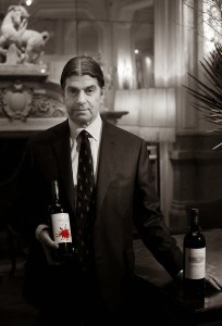 | Der Schweizer Künstler John Armleder mit dem 2012er Ornellaia |
