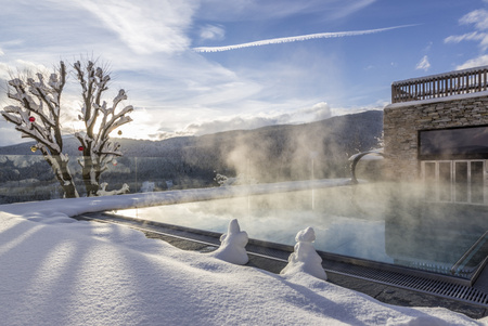 Entspannung vom Feinsten, professionelle Anwendungen und hochwertige Produktlinien gibt es im 3.000 m² großen alpinen Wellnessbereich, der nun eine weitere Perle bereithält: den ganzjährig beheizten 25 Meter Sky Pool mit 360° Panorama-Blick. Hier fühlt man sich den Bergen und auch dem Himmel ganz nah.