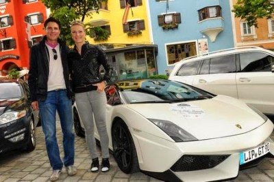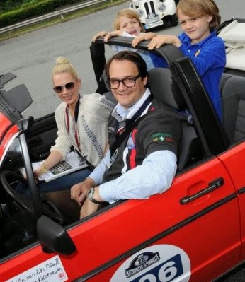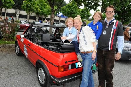 Bild unten: Moderatorin Tamara Gräfin von Nayhauß mit Familie im Golf 1 Cabrio