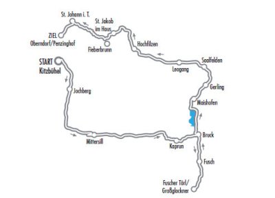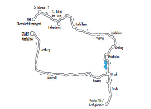„Gasteinertal-Runde“ mit Kitzbühel – St. Johann in Tirol – St. Ulrich am Pillersee – Hochfilzen – Mühlbach bei Lofer – Bischofshofen – Hüttau – Altenmarkt – Wagrain – Bad Hofgastein – Embach – Rauris – Bruck an der Großglocknerstraße – Kaprun – Mittersill – Pass Thurn – Kitzbühel