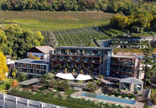 Das Muchele ist klein und fein. Mehr als 40 Zimmer und Suiten sollen es auch nicht werden. Auf der Sonnenseite in Burgstall, nur fünf Kilometer von Meran entfernt, liegt das mediterrane Vier-Sterne-Superior-Wellnesshotel.