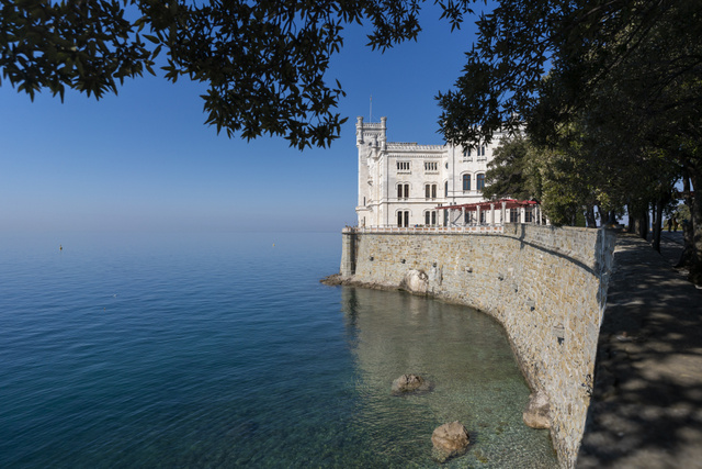 Neben Buchten und Bädern liegen rund um Triest weitere Schätze, für die es sich lohnt, die Kaffeehäuser der Stadt zu verlassen. Klassischer Anziehungspunkt ist das im 19. Jahrhundert für Erzherzog Maximilian von Österreich erbaute Castello Miramare, das weite Blicke über den Golf von Triest öffnet.