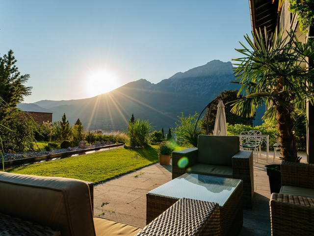 Dank des unverbauten Ausblicks auf die Hausberge Predigtstuhl und Hochstaufen empfiehlt es sich, das Frühstück auf der großen Panoramaterrasse einzunehmen. Ab Dezember 2023 ergänzt ein gut 600 Quadratmeter großer Veranstaltungsraum für Anlässe aller Art das Angebot der Unterkunft. Apartment ab 65 Euro pro Person inkl. Frühstück.