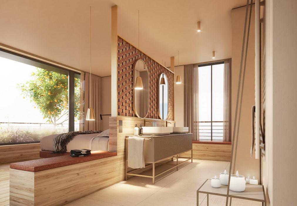 Grosszügig sind die hellen, luftigen Suiten, teilweise mit offenen Bädern, in denen man die Terrassentüren weit öffnen und die Landschaft förmlich hereinholen kann. Das Interieur strahlt eine unaufgeregte Lässigkeit aus. Sanfte Stein-Farben, akzentuiert mit einem Hauch von Lavendel- und Kupfer-Tönen, finden sich spielerisch wider.
