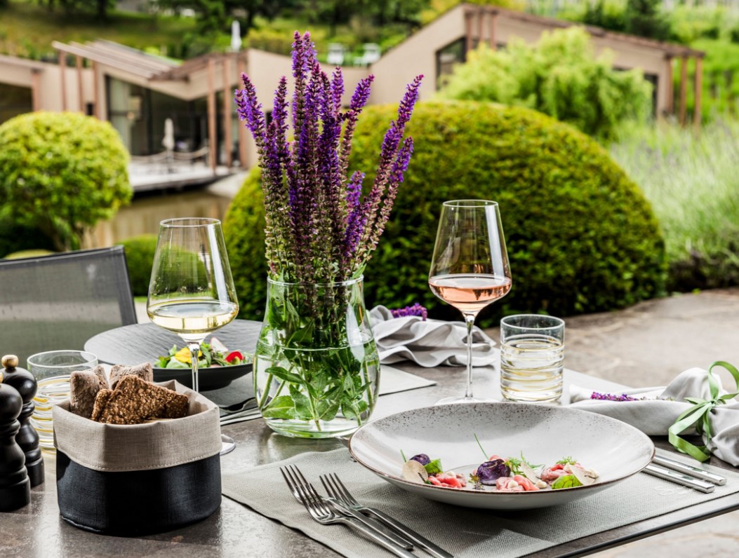 Von hausgemachten Nudeln über Bio-Milchprodukte bis hin zum heimischen Bienenhonig kann das Küchen-Team sich der Fülle einer gesegneten Region bedienen. Vor der Türe blühen im Frühjahr Apfel-Haine, soweit das Auge reicht.