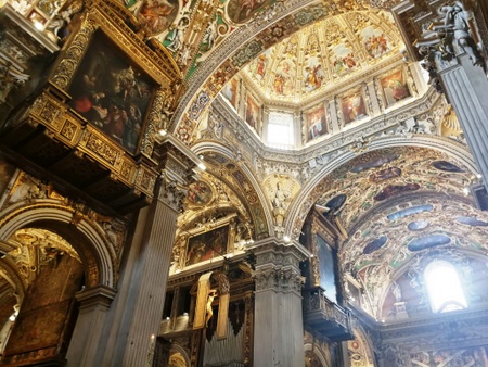 Ein weiterer Platz, die vergleichsweise kleine Piazza del Duomo, zieht Touristen in Scharen an, denn hier schmiegen sich gleich mehrere prächtige Sakralbauten aneinander. Zum einen der Dom von Bergamo, die Cattedrale di Sant‘ Alessandro Martire mit ihrer prächtigen Kuppel, ein Sakralbau, dessen Grundmauern bereits im 15. Jahrhundert gelegt wurden.