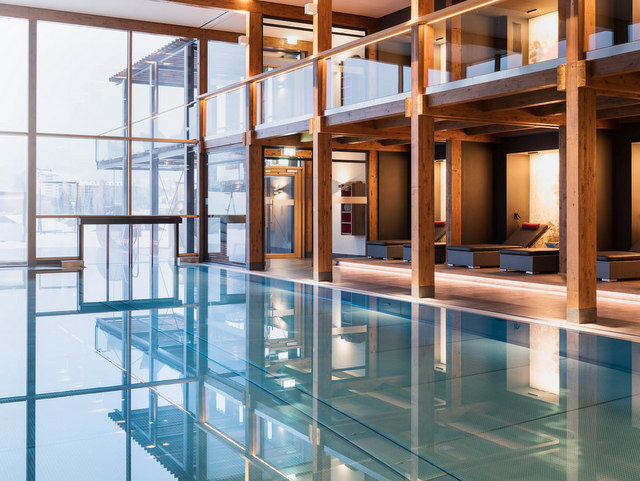 Die Bauweise des schönen Spas mit mehreren Saunen und beheiztem Indoor- und Outdoorpool ist von der japanischen Architektur inspiriert. Minimalistische Ästhetik, helles Fichtenholz, große Fenster und Freiflächen verbinden den Innenraum mit der Umgebung.
