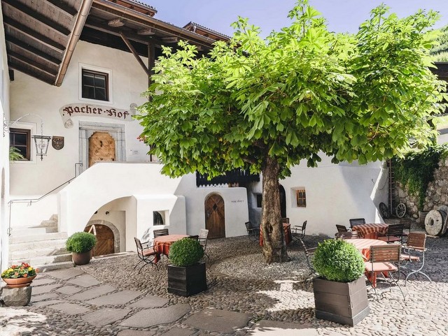 Pacherhof , Hotel & Winery, Michael-Pacher-Straße 1, 39040 Neustift bei Brixen, Tel. +39 0472 835717, www.pacherhof.com, Zimmer ab 114 Euro pro Person/Nacht inkl. Halbpension,