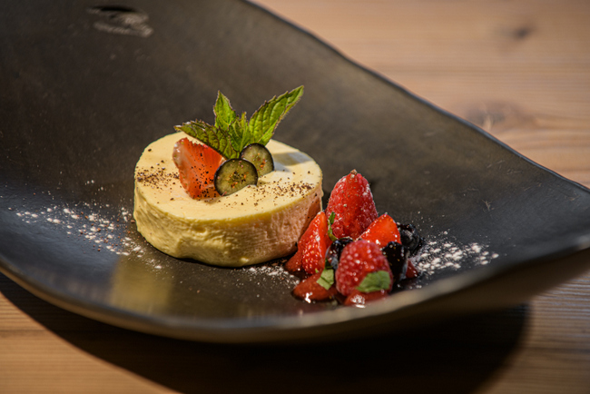 Eine köstliche Nachspeise wie die Sinfonie „Graf“ mit Erdbeere, Schokolade und Passionsfrucht ist der Abschluss eines jeden Degustationsmenü.