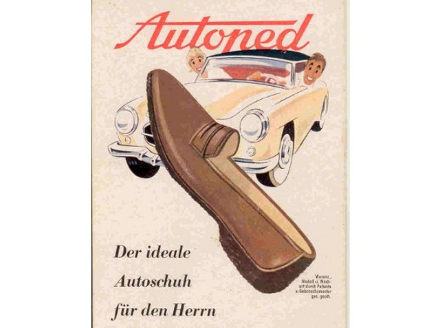 Mit Gespür für diesen Trend lancierte Sioux 1957/58 den Autoped, einen schicken und modernen Auto-Mokassin. Der leichte Slipper saß dicht am Fuß, eine spezielle Rillensohle verbesserte die Haftung auf den Pedalen und hob Sicherheit und Komfort beim Autofahren. Die hochgeführte Kautschukkrepp-Ferse schützte das Oberleder vor Kratzern und Abschürfungen.