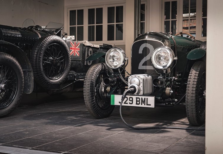 Der Bentley Blower Jnr verfügt über einen 48-V-Elektroantrieb mit einem 15 kW (20 PS) starken Motor. An der Fahrzeugfront befindet sich im Kompressorgehäuse der Ladeanschluss, über den das integrierte Ladegerät an eine beliebige Typ-1- oder Typ-2-Steckdose angeschlossen werden kann. Er ist von Bentleys berühmtem Matrix-Kühlergrill in einem authentischen, vernickelten Kühlergehäuse umgeben.