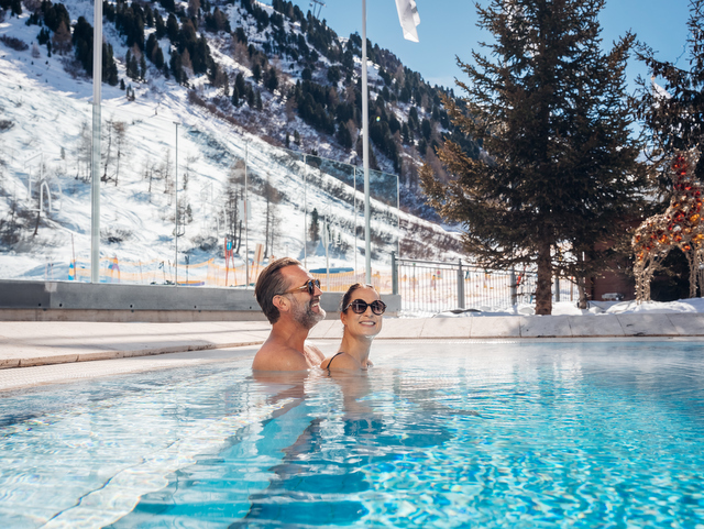 Perfekte Wellness-Freude erlebt man im 1.500 m² Alpen Spa mit beheizten Outdoor-Pool, wo der Alltag rasch in weite Ferne rückt. Faszinierend ist dabei der Ausblick auf die imposante Bergwelt der Ötztaler Alpen.