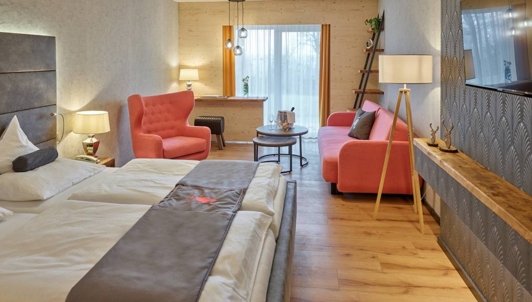 Die geräumigen un liebevoll eingerichteten Zimmer und Suiten schaffen mit warmen Farben und viel Tageslicht eine Wohlfühlatmosphäre und lassen so genügend Freiraum zur Entfaltung und zum süßen Träumen von einem ereignisreichen Tag. Dabei kann man die schöne Aussicht mit Blick ins Grüne in vollen Zügen genießen.