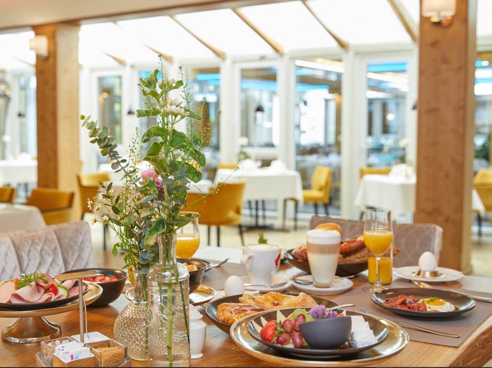 Das Frühstücksbuffet ist reichhaltig und abwechslungsreich, für Langschläfer gibt es ein à la carte-Frühstück ab 10.30 bis mittags. Hausgemachte Kuchen aus der eigenen Konditorei, eine Versuchung für Naschkatzen, dazu feiner österreichischer Meinl Kaffee gibt es ab 13 Uhr nachmittags.