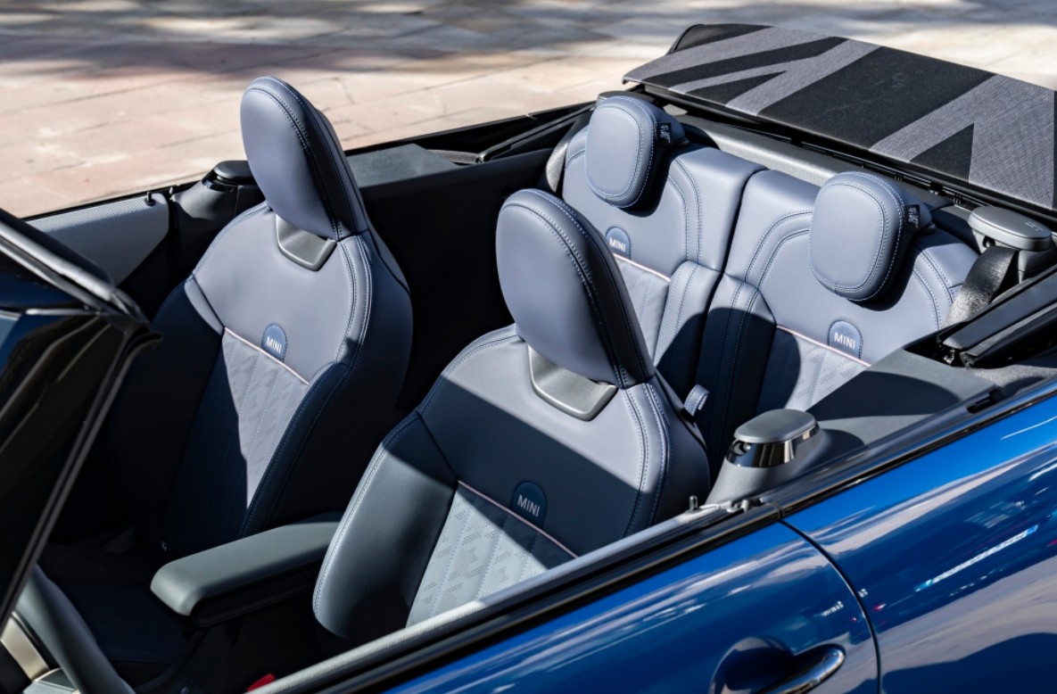 Schon beim Öffnen des Verdecks offenbart das MINI Cooper Cabrio S ein Interieur, das modernen Minimalismus mit purer Fahrfreude vereint. Der Fokus liegt auf klar akzentuierten Details und innovativen Textiloberflächen, die eine wohnliche und dennoch sportliche Atmosphäre schaffen.